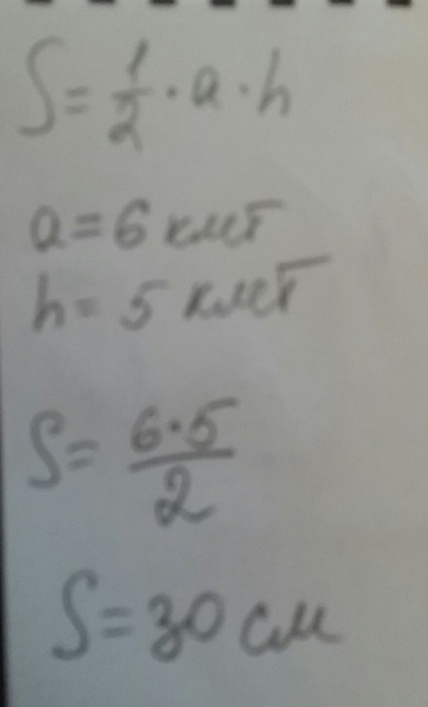 просто надо посчитать основание и высоту и по формуле нафдеш площадь 30 см