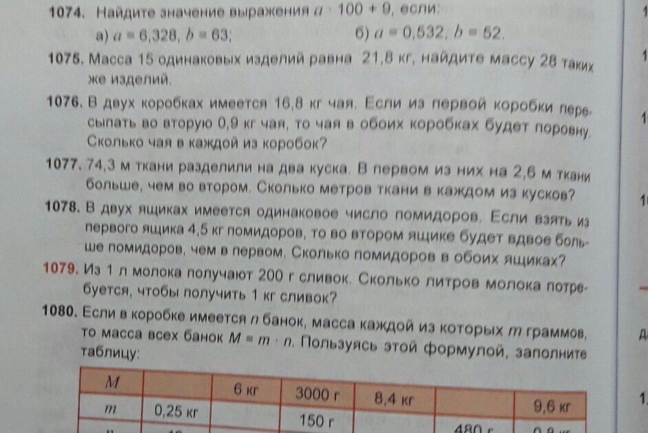 1079: Если из 1 литра получается 200 грамм сливок, то, чтобы получить 1000 грамм сливок необходимо 5 литров молока.