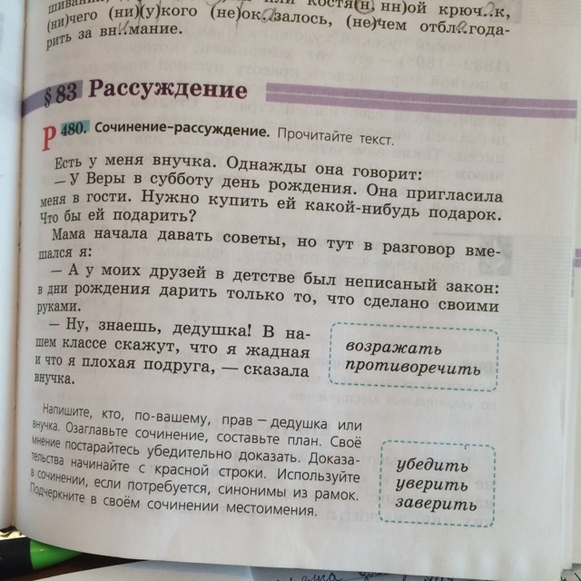 1Дедушка был прав, 2заглавие: Подарок к праздику, День рождения, Девочка и дедушка 3(честно не понял) 4 меня, она, ей, я, моих(подчеркивай повторные местоимения еще)
