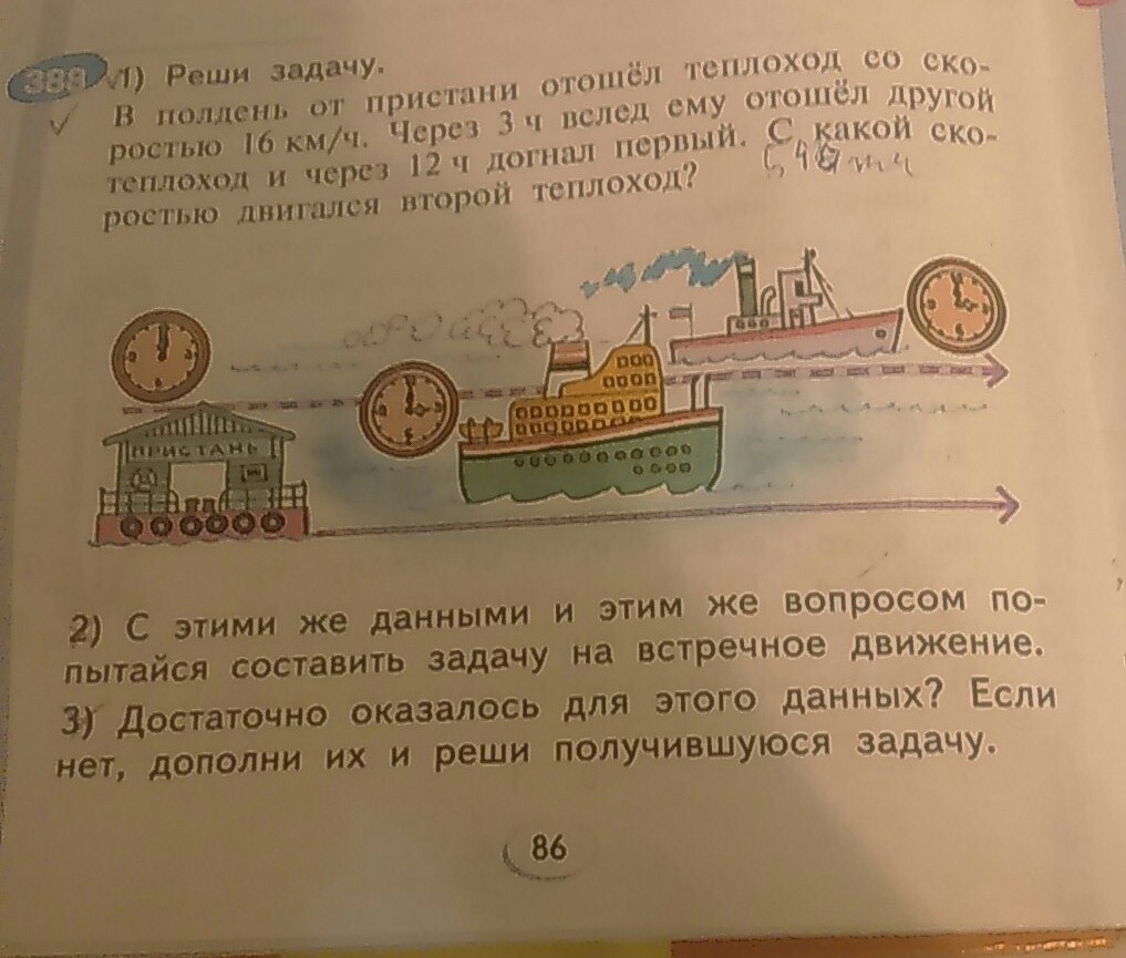 2) 16 км/ч* 16= 240 км прошёл 1-Й теплоход до встречи