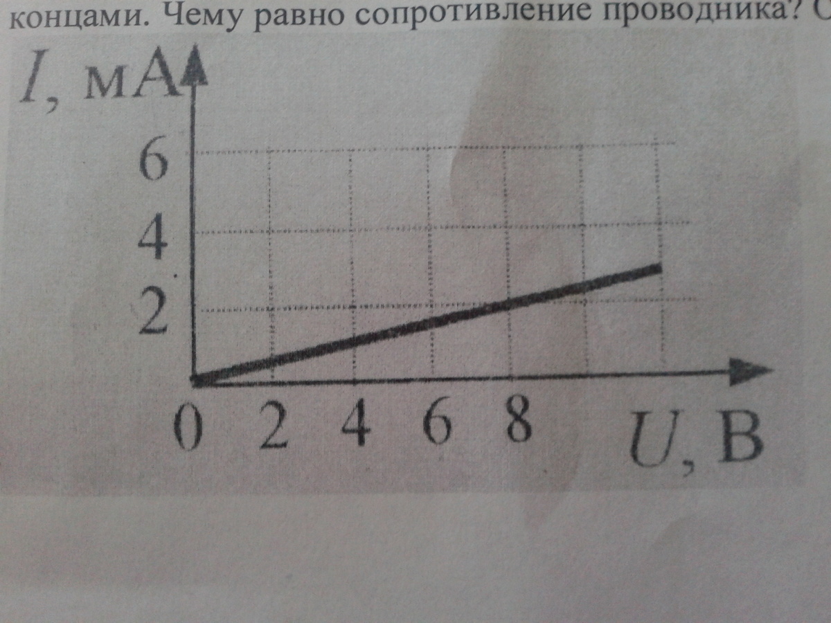 На рисунке изображен график зависимости силы тока в проводнике от напряжения между его концами.Чему равно сопротивление проводника?Ответ выразите в единицах измерения Ом.