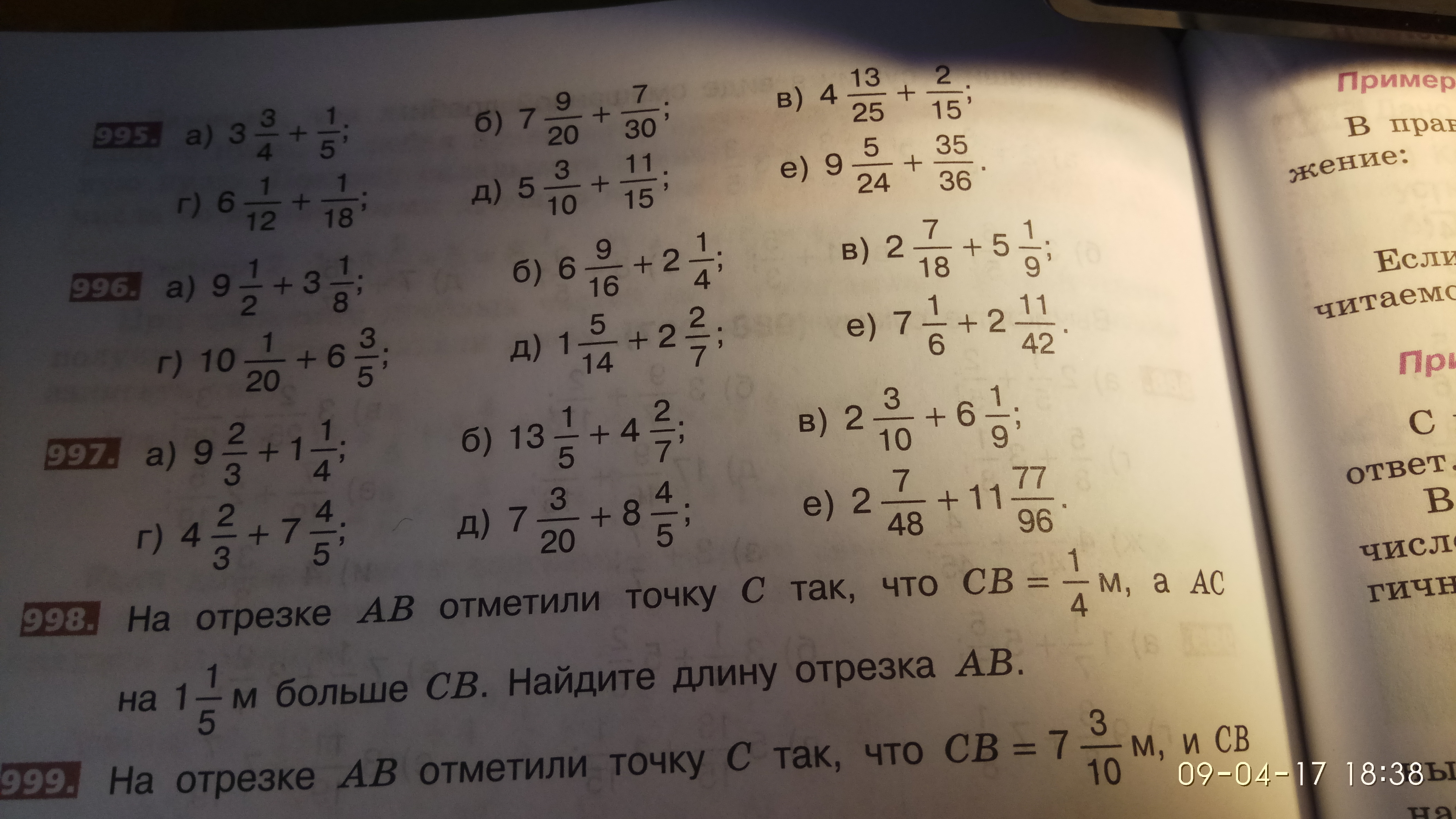 д)= 7 3/20 +8 16/20 = 15 19/20