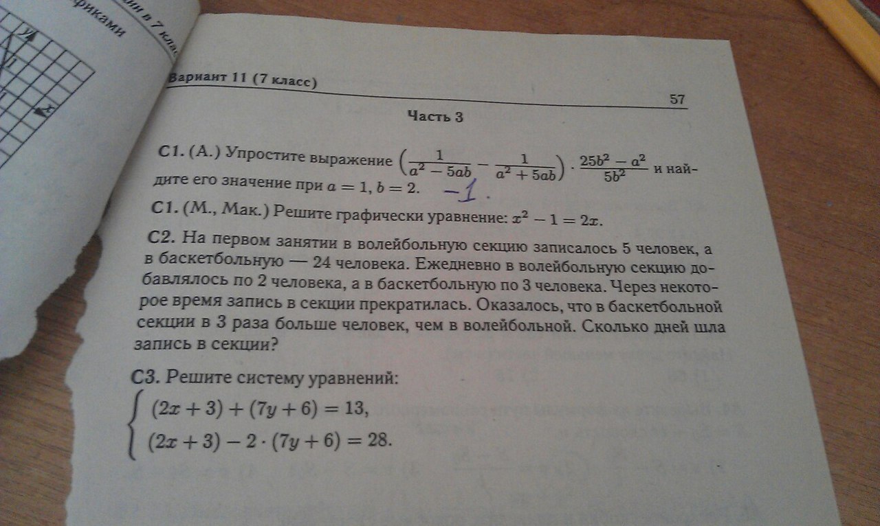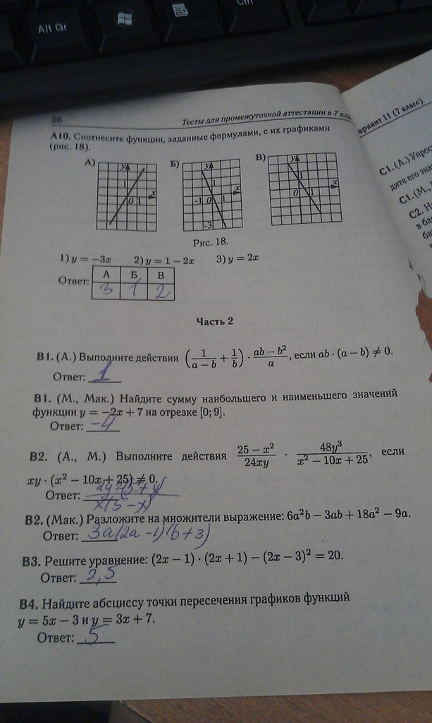 Помогите, пожалуйста)) ответы есть, нужно только решение!! кому не трудно, решите все на листке и пришлите мне фотографиями :) часть 3 ( C ) решите только первое, но если сможете то все, ответы сказать могу. решение очень нужно особенно на C1 и часть B. все остальное, если сможете))) ВНИМАНИЕ! РЕШАТЬ ВСЕ УРАВНЕНИЯ И ТД НАДО НЕ ЧЕРЕЗ ТЕОРЕМУ ВИЕТА ИЛИ ДИСКРИМИНАНТ. ЕЩЕ НЕ ПРОХОДИЛИ. ( 7 класс окончен )