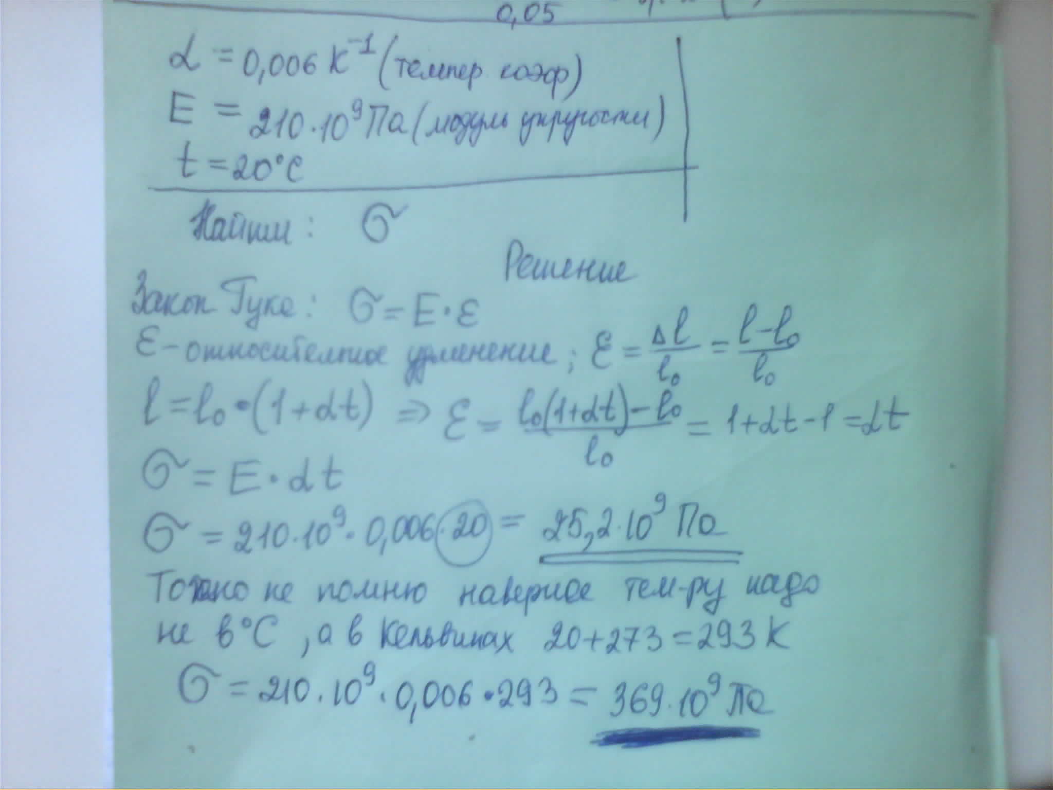 Стальной брусок зажат между двумя стойками при температуре 0 С. Найти напряжение бруса при температуре 20 С.