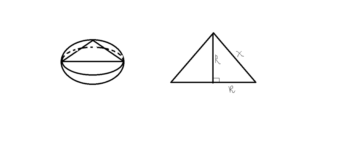 Полуается так, что радиус сферы равен радиусу основания конуса(т.к. их центры совпадают)