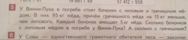 95/5=19 бочек