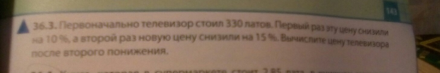 297-(297*0,15) = 297 - 44,55 = 252,45(л) - цена, после второго понижения