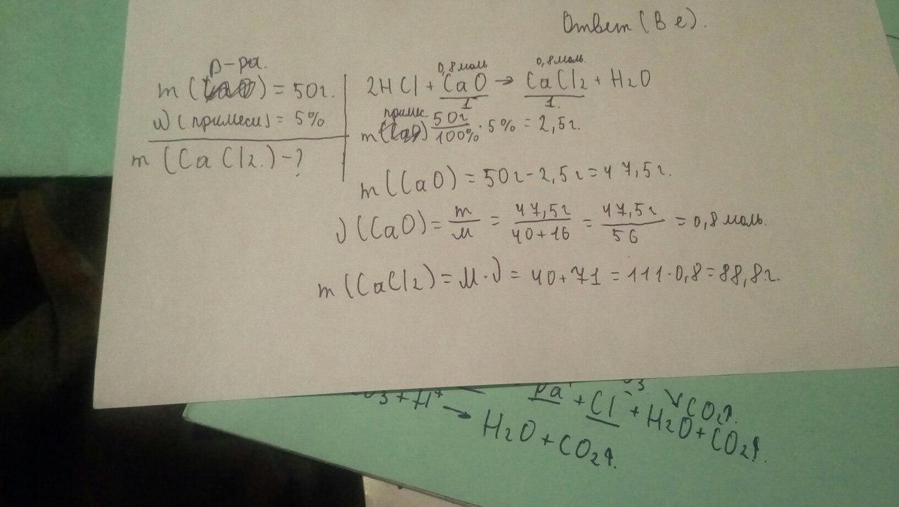 Вычислите массу Ca2Cl полученного при взаимодействии HCl с CaО массой 50г содержащей 5% примесей