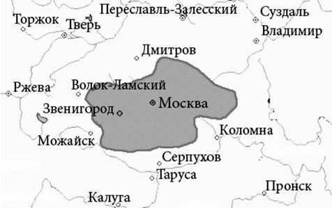 Назовите московского князя, получившего в управление территорию, границы которой обозначены на схеме.