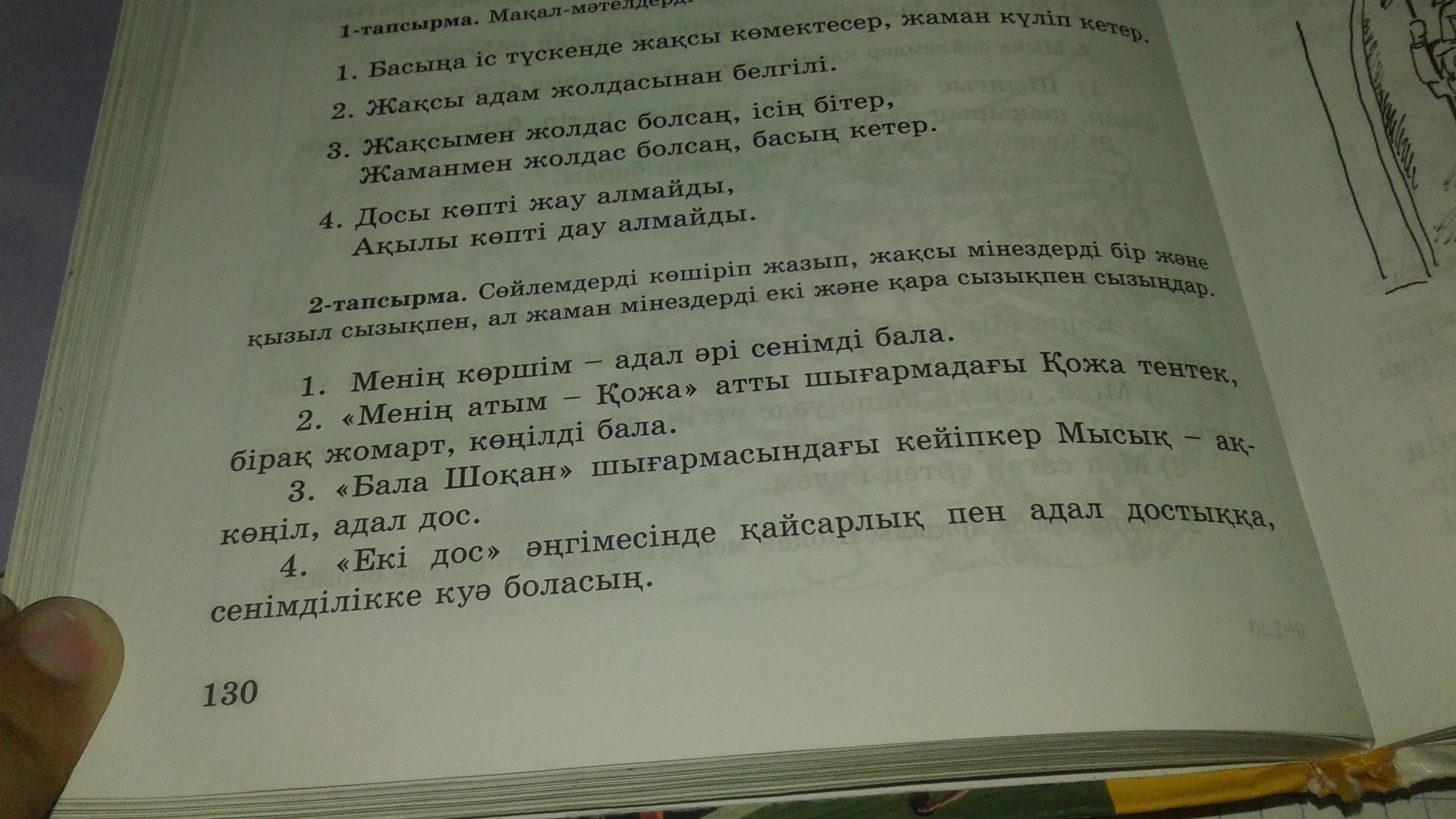 Хорошие качества: адал, сенімді, жомарт, көңілді,ақкөңіл, қайсар, сенімді