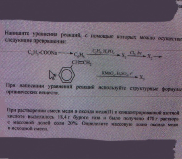 5) C₆H₅-CH=CH₂ + 2KMnO₄ + 3H₂SO₄ (+T) = C₆H₅-COOH + CO₂ + K₂SO₄ + 2MnSO₄ + 4H₂O