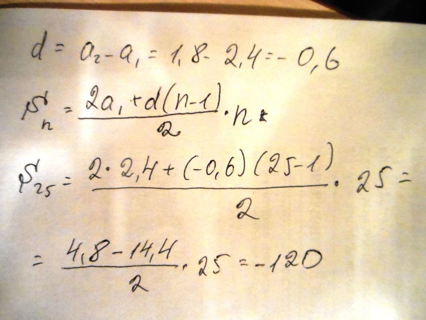 a25=a1+24.d,a25=2,4+24.(-0,6)=2,4-14,4=-12, a25=-12