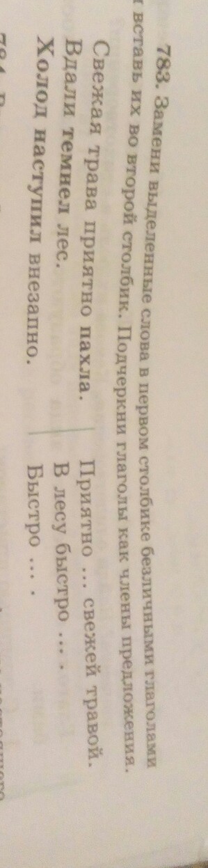 Замени выделенные слова в первом столбике безличными глаголами вставь во второй столбик.