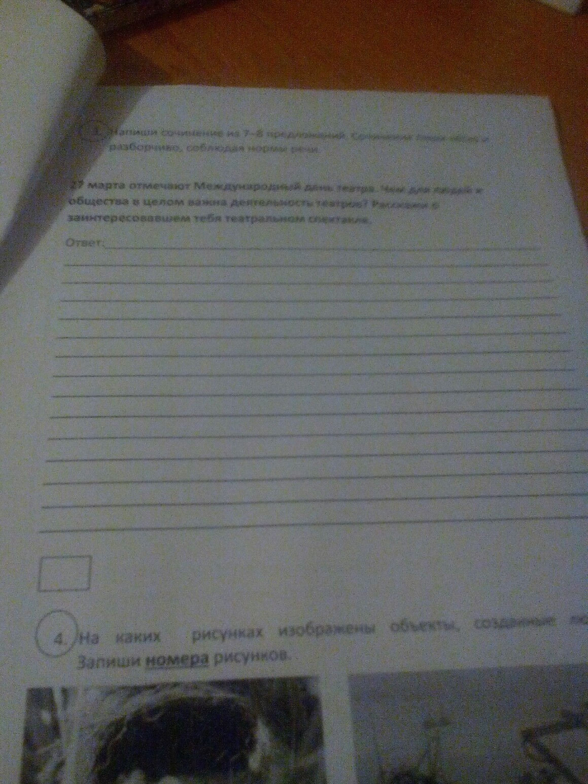 27 марта отмечают Международный день театра. Чем для людей и общества в целом важна деятельность театров? Расскажи о заинтересовавшем тебя театральном спектакле. 7 предложений
