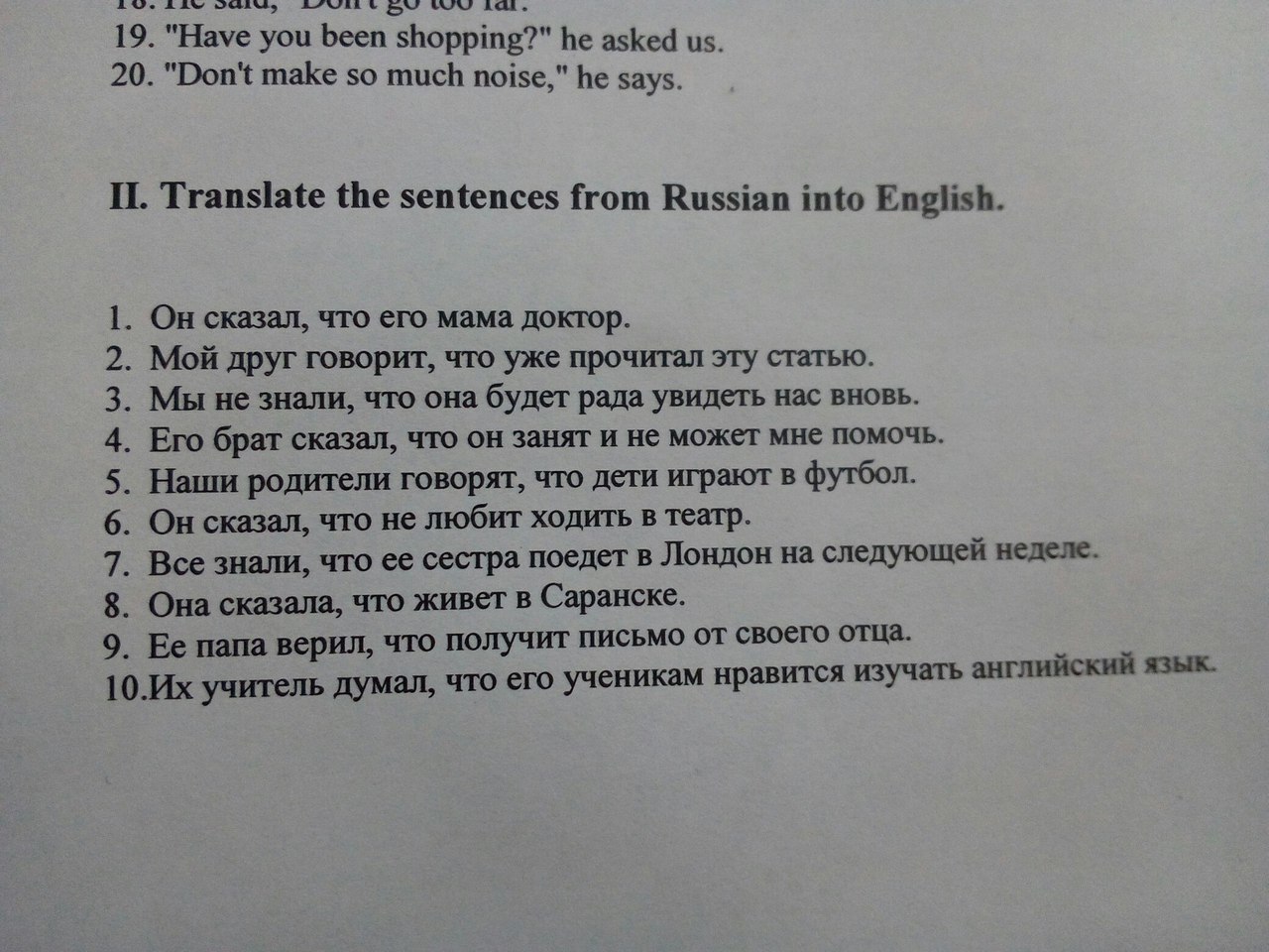 Сделать из прямой речи косвенную (перевести) (предложения на фотографии)