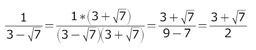 Какое из данных ниже чисел является значением выражения 1 / 3 - √7. Ответом на него является 3 + √7 / 2. Я не совсем понимаю откудого взялась цифра 2