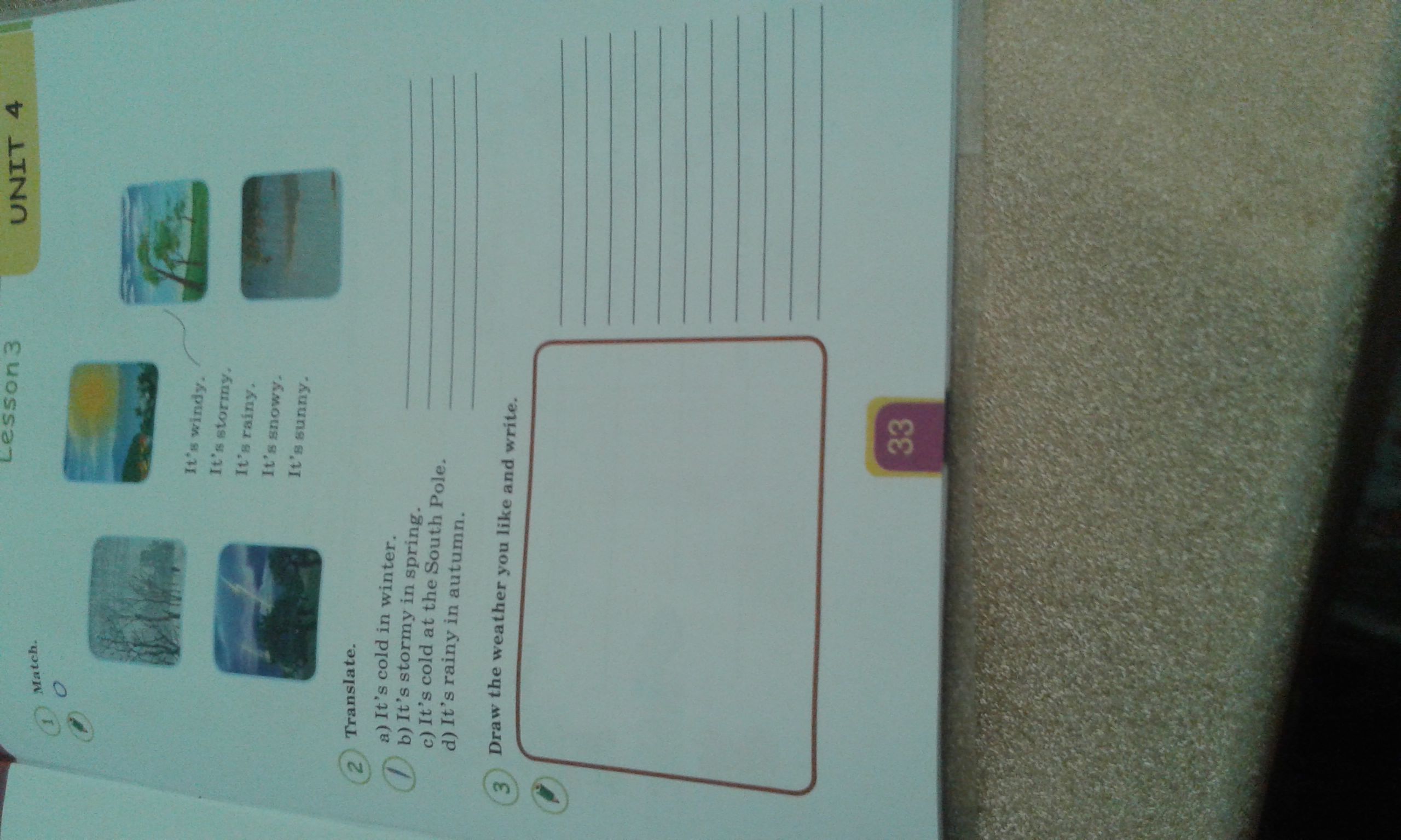 тебе надо нарисовать про погоду который тебе нравится и описать его!