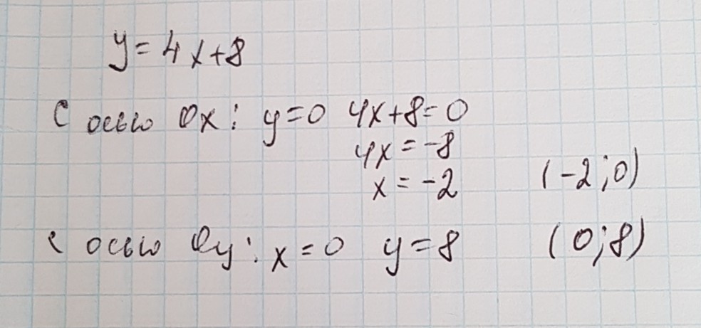 Найти координаты пересечения графика функции y=4x+8 с осями координат