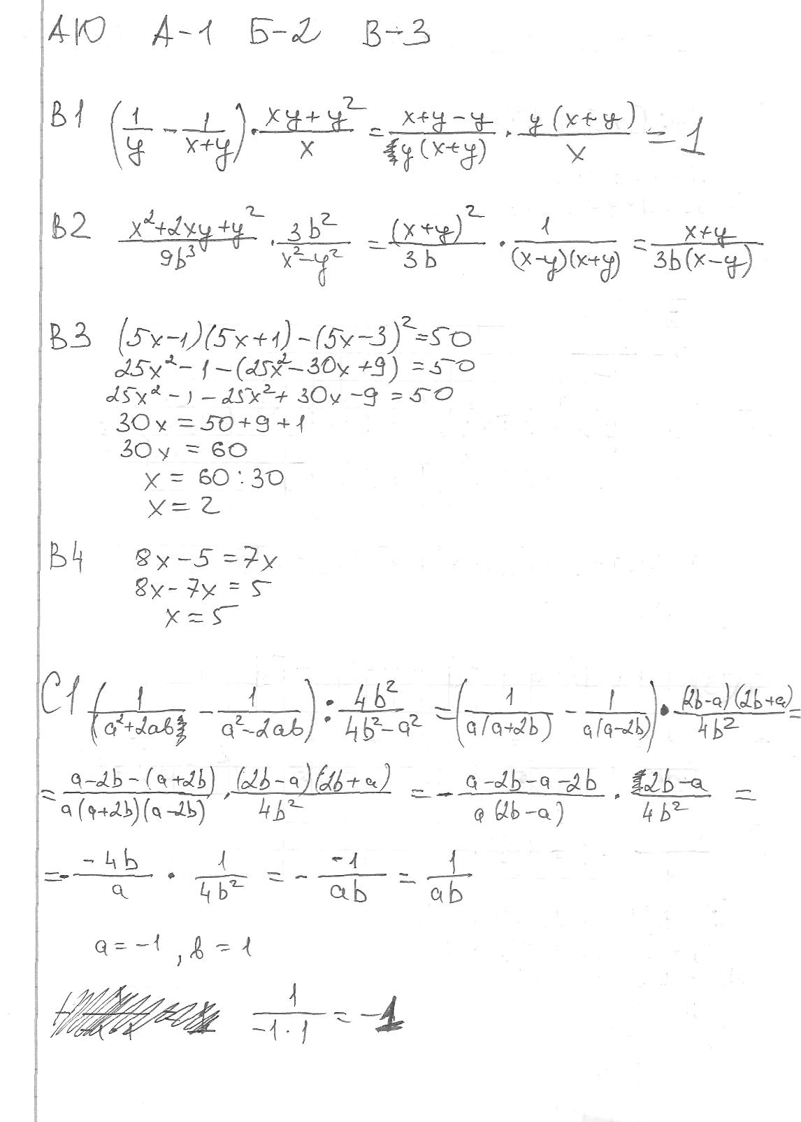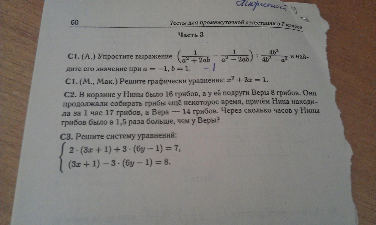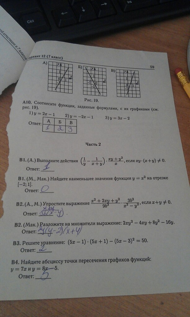 Помогите, пожалуйста)) ответы есть, нужно только решение!! кому не трудно, решите все на листке и пришлите мне фотографиями :) часть 3 ( C ) решите только первое, но если сможете то все, ответы сказать могу. решение очень нужно особенно на C1 и часть B. все остальное, если сможете))) ВНИМАНИЕ! РЕШАТЬ ВСЕ УРАВНЕНИЯ И ТД НАДО НЕ ЧЕРЕЗ ТЕОРЕМУ ВИЕТА ИЛИ ДИСКРИМИНАНТ. ЕЩЕ НЕ ПРОХОДИЛИ. ( 7 класс окончен )