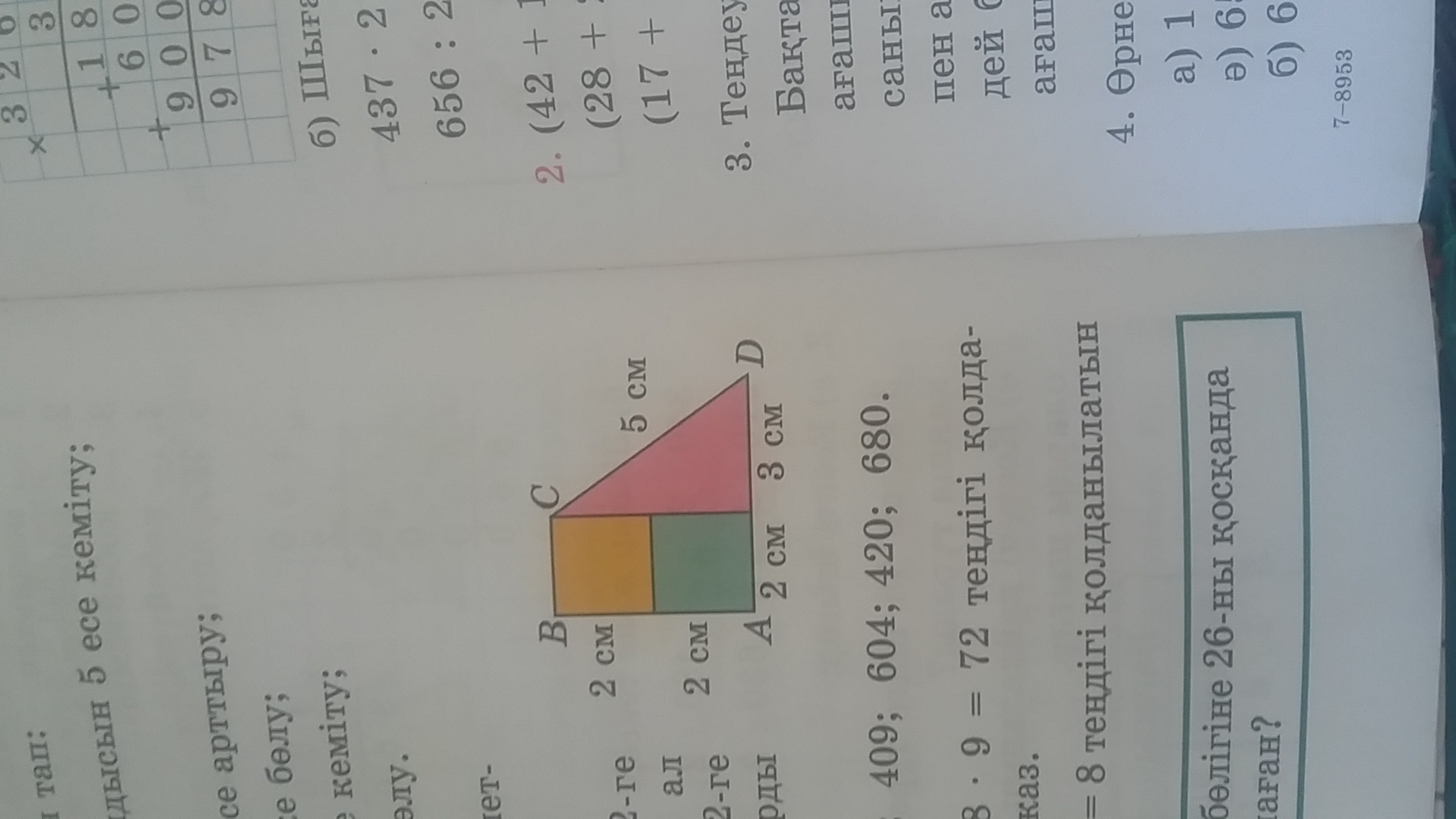Площадь: 2*2+2*2+0,5*4*3=14 (см2).