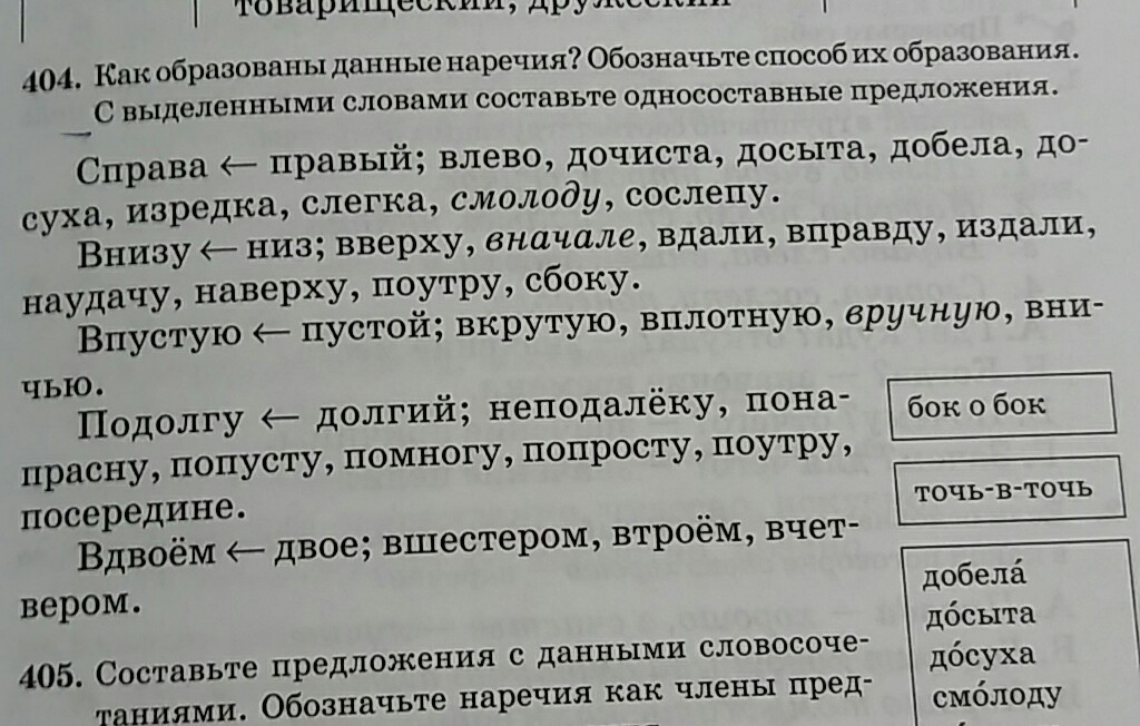 Первый ряд: чистый-дочиста, сытый-досыта( и т.д) белый,сухой,лёгкий,молодой,слепой