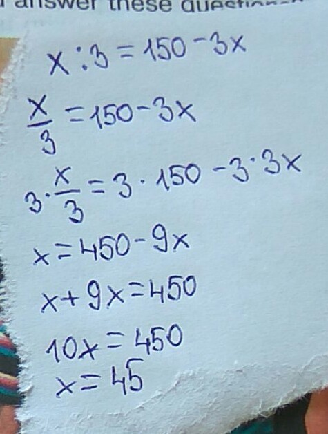 x:3=(50-x) *3 умножаем обе части уранения на 3. получается
