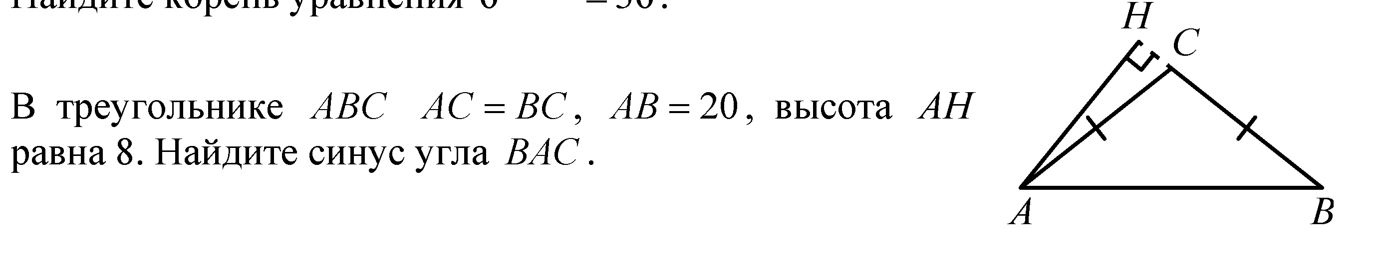 В прямоугольном треугольнике ABH гипотенуза АВ = 20, катет АН = 8