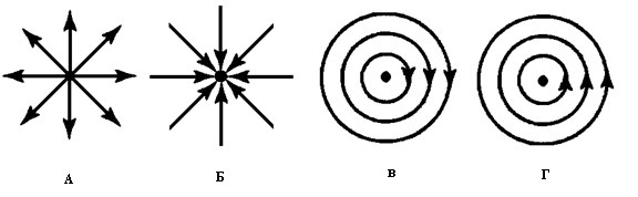 На каком рисунке правильно изображена картина магнитных линий магнитного поля длинного проводника с постоянным током, направленным перпендикулярно плоскости чертежа на нас?