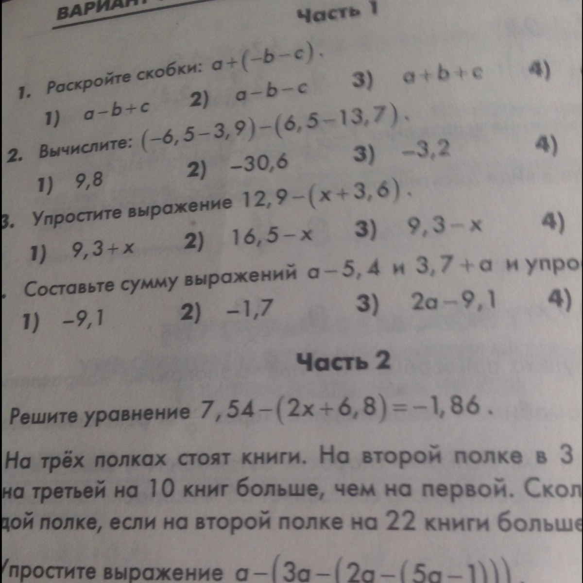 7,54 - (2x + 6.8) = -1.86
