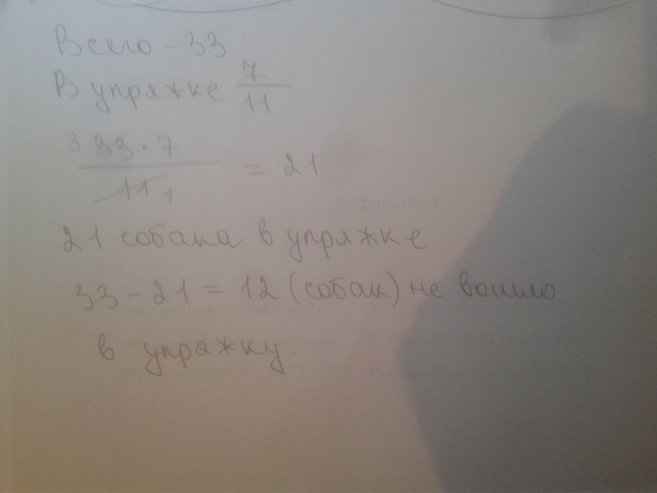На базу в Антарктиду доставили 33 собаки. Из 7/11 всех собак составили упряжку, на которой отправились в поход. Сколько собак не вошло в упряжку?