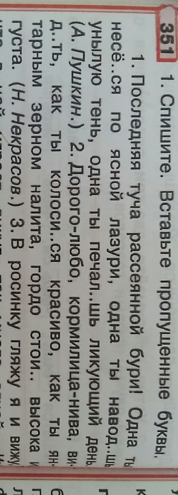 1.Последняя туча рассеянной бури! Одна ты несёшься по ясной лазури,одна ты наводишь унылую тень,одна ты печалишь ликующий день.2.Дорого-любо,кормилица-нива,видеть, как ты колосишься красиво,как ты янтарным зерном налита,гордо стоишь высока и густа.