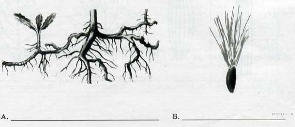 Осот — один из самых распространённых и злостных сорняков на полях. Распространению осота в посевах способствуют приспособления, позволяющие растению быстро восстанавливать свою численность и площадь произрастания. На рисунках А и Б эти приспособления приведены. Напишите названия этих органов.