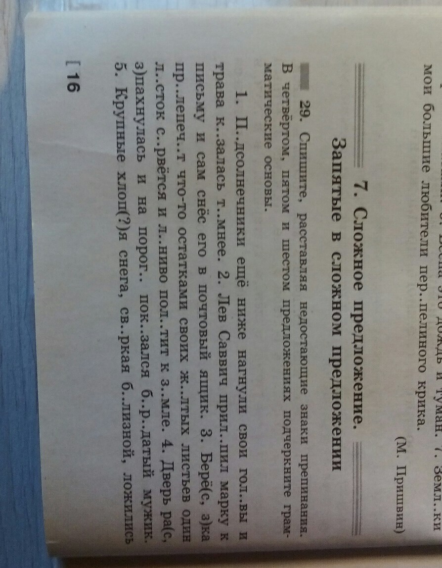 1. Пропущенные буквы: подсолнечники, головы, казалась, темнее, прилепил, березка, пролепечет, желтых, листок, сорвется, лениво, полетит, земле, распахнулась, пороге, показался, бородатый, хлопья, сверкая белизной.