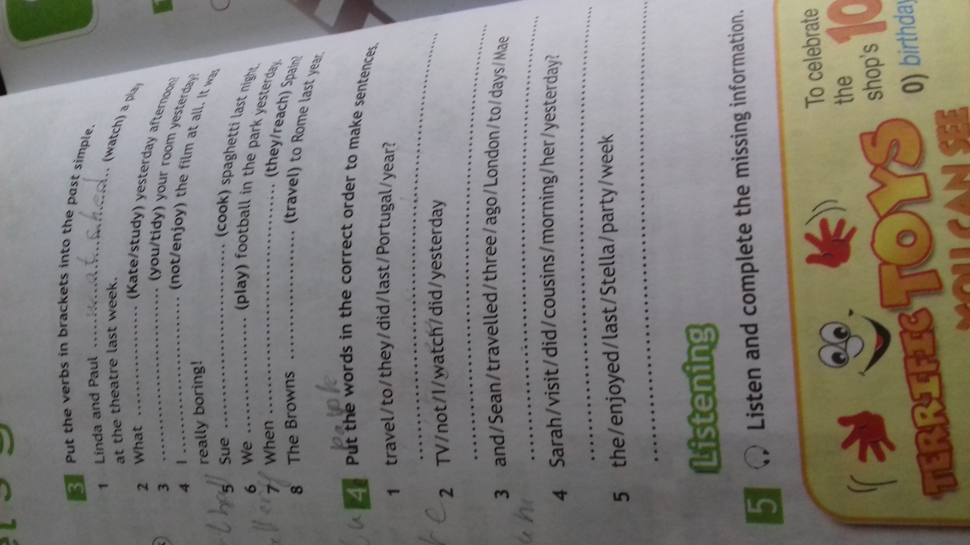 3) Sean and Mae travelled to London three days ago.