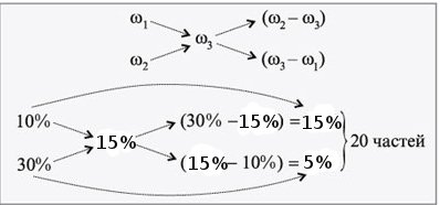 Для приготовления 300г 15%-го раствора соли, нужно взять 20(15 и 5) частей исходной концентрации.