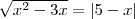 sqrt{x^2 - 3x} = |5 - x|\\ x(x - 3) geq 0,  x_1 = 0,  x_2 = 3,  x in (-infty;0] cup [3; +infty)\\ underline{x^2} - 3x = 25 - 10x + underline{x^2}\\ 7x = 25\\ boxed{ x = frac{25}{7} }