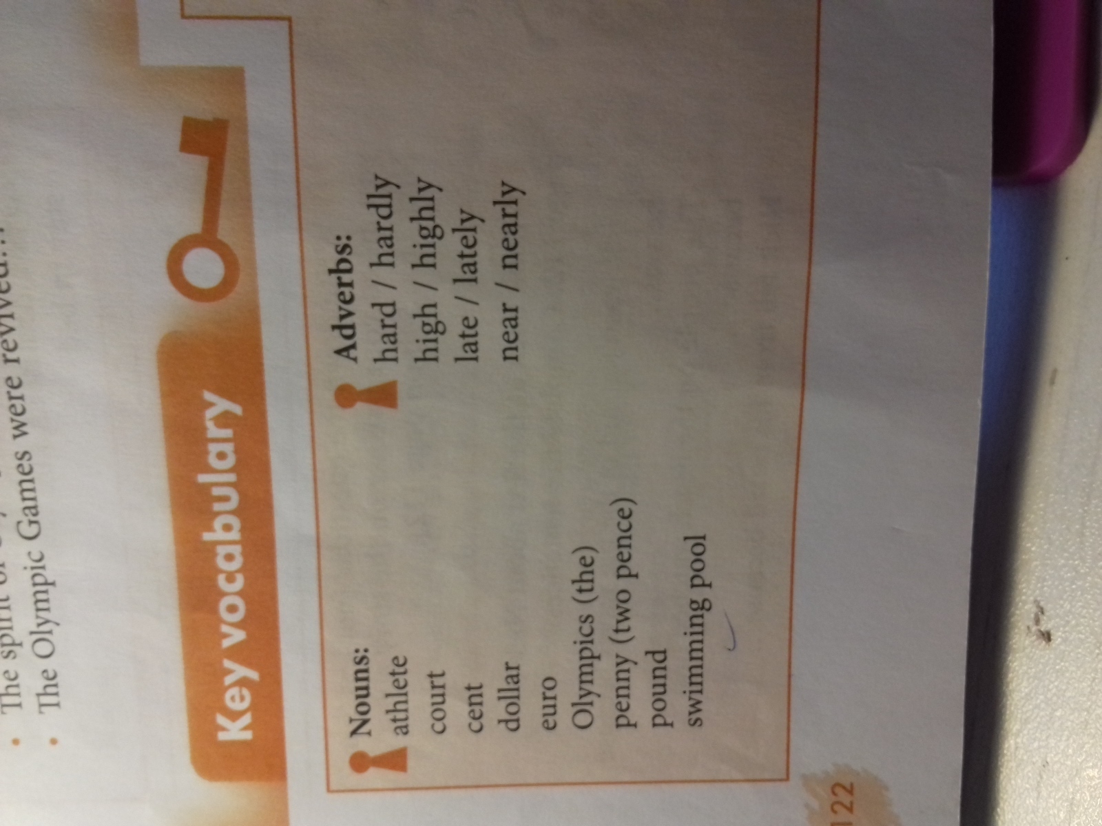 Существительные: спортсмен корт цент доллар Олимпийские игры () пенни (два пенсов) фунт бассейн.