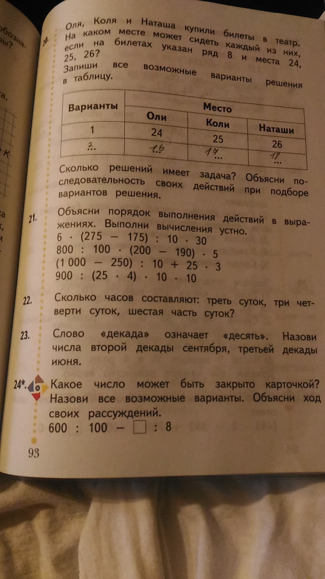 Третья часть суток 7 часов, четверть суток 6 часов, шестая часть суток 4