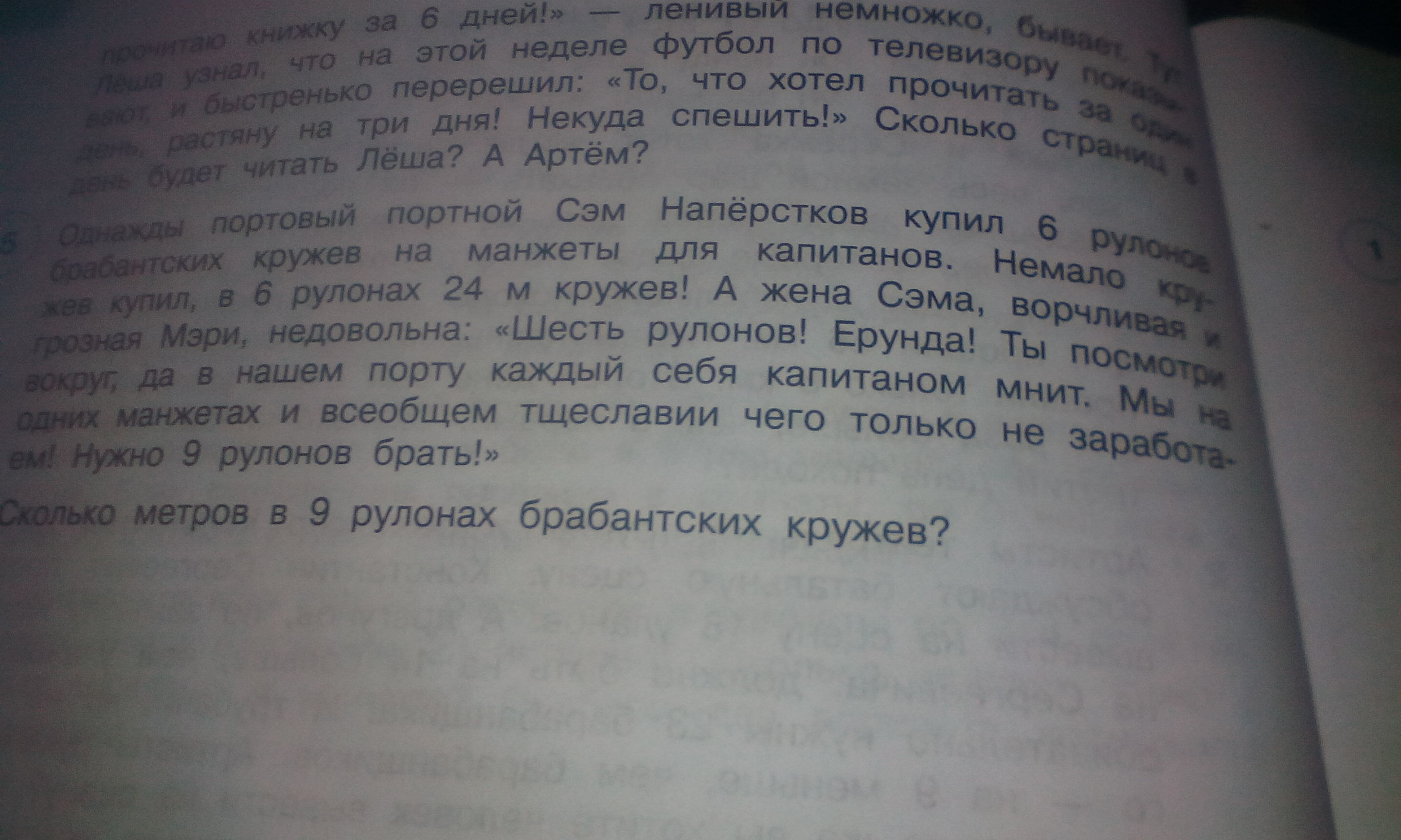 24:6=4 кружев в одном рулоне, 4*9=36 кружев в 9-и рулонах