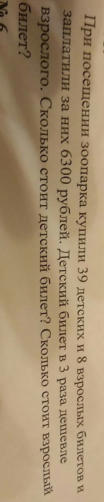 Пусть детский билет стоит х, а взрослый тогда 3х, всего потратили 6300 рублей, то: