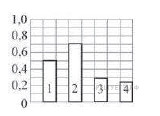 Доля атомов радиоактивного изотопа, не распавшихся по прошествии интервала времени, равного половине периода полураспада, обозначена на гистограмме цифрой 1), 2), 3), 4)