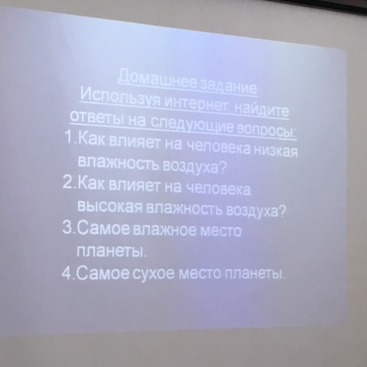 Влажность влияет на потоотделение и тепловой обмен, а также на плотность кислорода в атмосфере. При относительной влажности воздуха менее 10% даже здоровые люди испытывают ощущение сухости в носоглотке, «резь» в глазах, может даже начаться носовое кровотечение. Особенно опасен сухой воздух для больных бронхиальной астмой, у них наблюдается общее ухудшение самочувствия, возможны приступы.