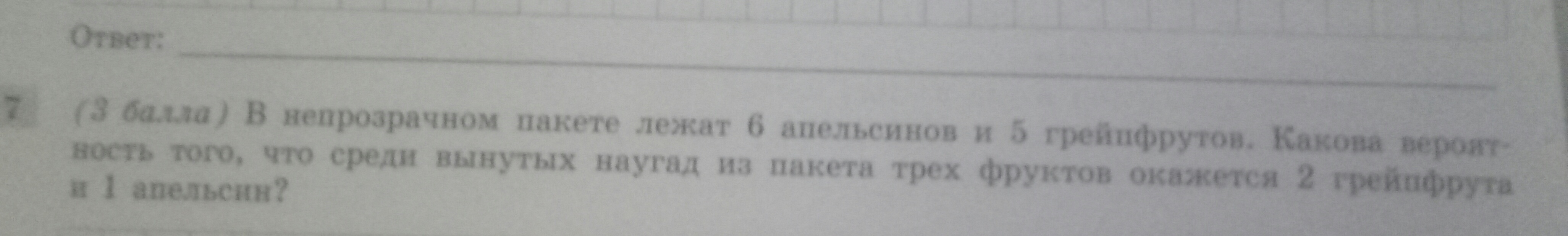 m= C5= 5!2!*3!=3*4*51*2*3=6010=10 - число различных способов выбрать 3 фрукта из имеющихся 5 грейпфрутов.