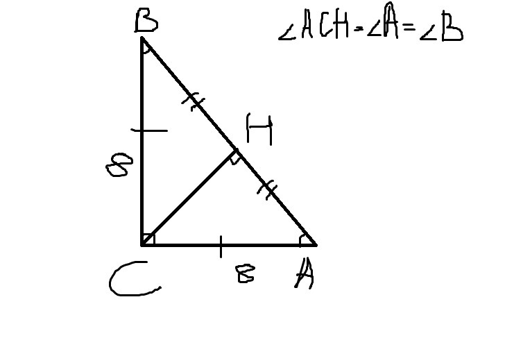 в прямоугольном треугольнике ABC, Угол C=90 градусов,AC=8см, угол ABC=45 градусов Найти: AB и высоту проведенную к гипотенузе
