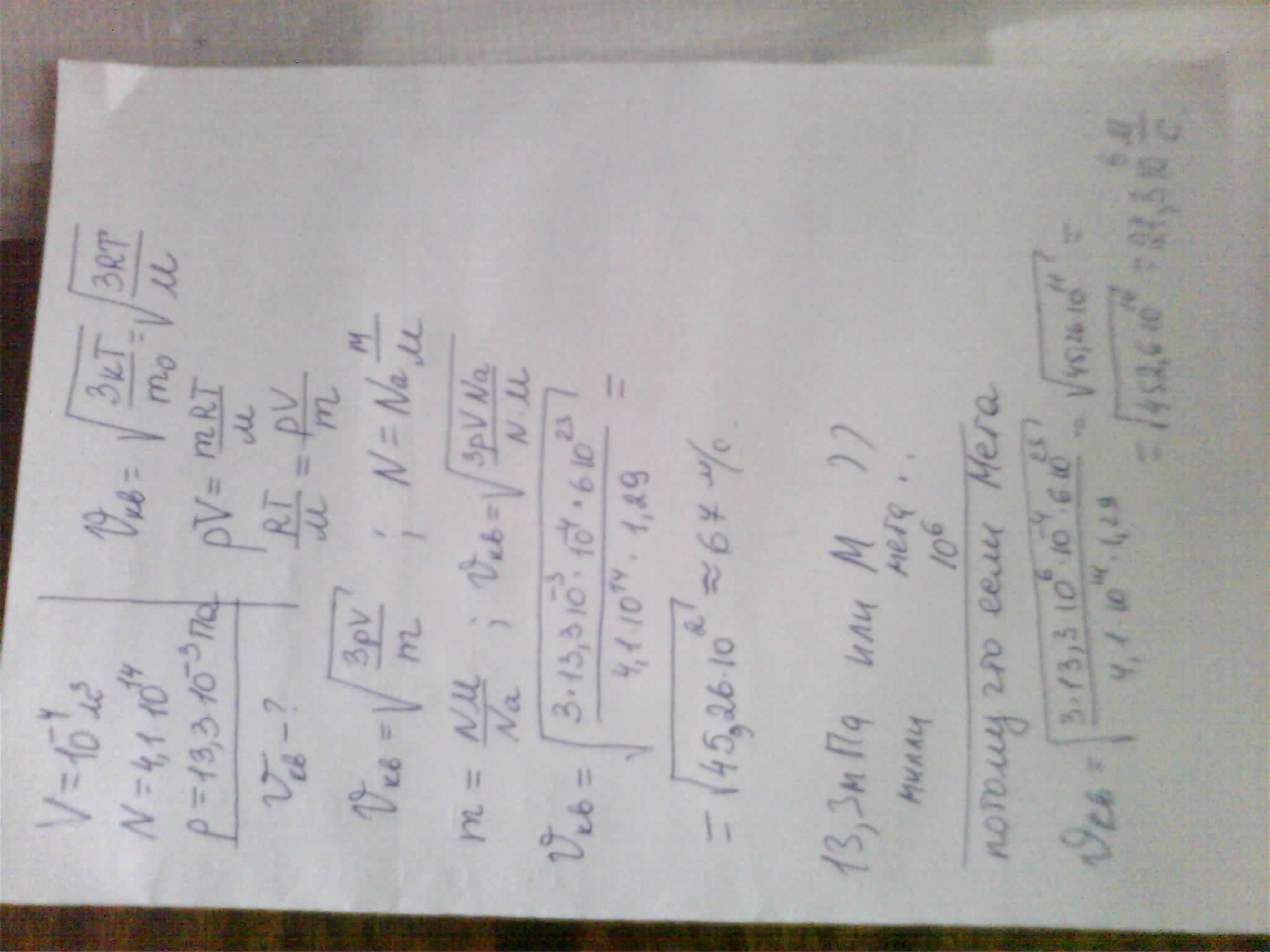 Определить среднюю квадратичную скорость молекул, если давление в лампе 13,3 мПа .
