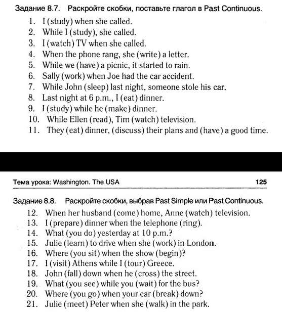 1. Раскройте скобки, поставьте глагол в Past Continuous.