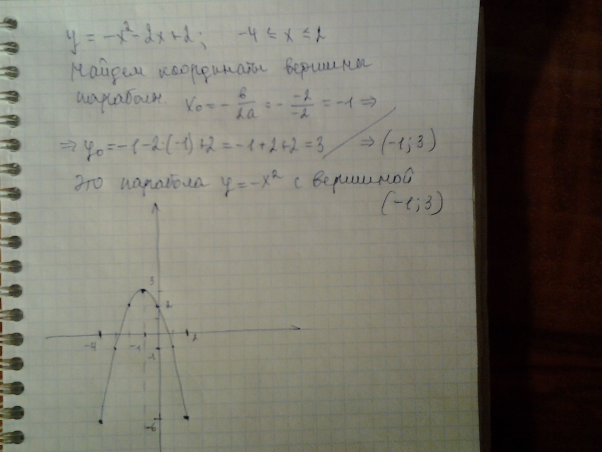 Применены : формула координат вершины параболы, стандартный график у = - х^2