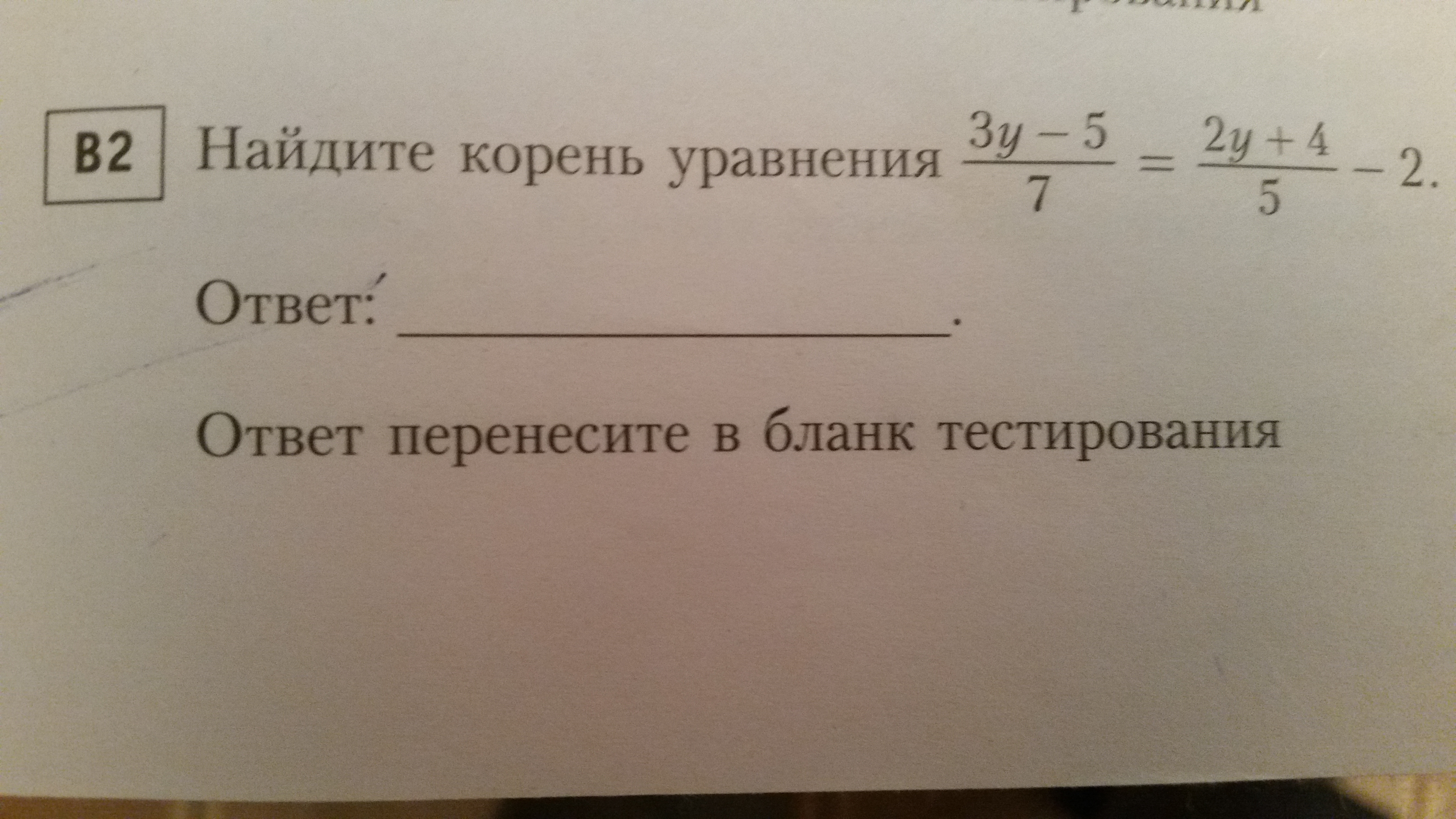 frac{3y-5}{7}= frac{2y+4}{5}-2 \ 5(3y-5)=7(2y+4)-2*35 \ 15y-25=14y+28-70 \ 15y-14y=28-70+25 \ y  =-17