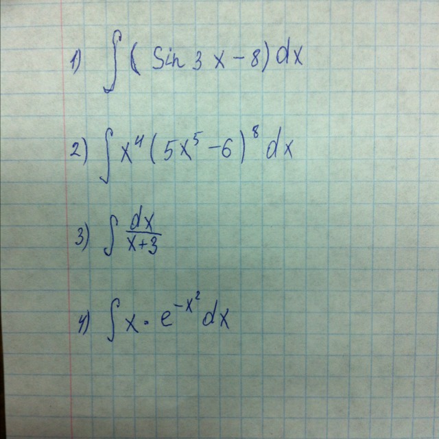 4) =-1/2 интеграл e^(-x^2)d(-x^2)=-1/2e^(-x^2)+c