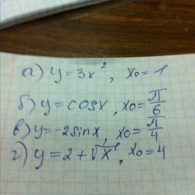 3) y¹=-2cosx , y¹(π/4)= -2*(√2/2)= -√2